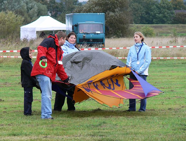 Familie Böcher bei den Startvorbereitungen. Es hatte 'etwas' zuviel Wind.