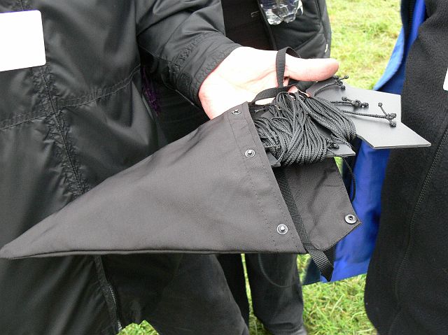 Tasche und 'Brogdenplatte' als Waagenschnur-Halter.