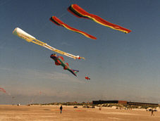 Flugstabilität nur hinderlich. Ohne fliegt der grosse Fisch besser. Die Waageleinen wurden weiter minimiert. Die Leinen zu den hinteren Flossen sind komplett überflüssig und die Leinen zu den Spitzen der vorderen Flossen werden ebenfalls nicht benötigt. Inzwischen hat er etliche Flugstunden und war weltweit im Einsatz. Geflogen ist er in Oostende, Fanø, Lemwerder, Berck sur Mer, Cervia, Korea .... |